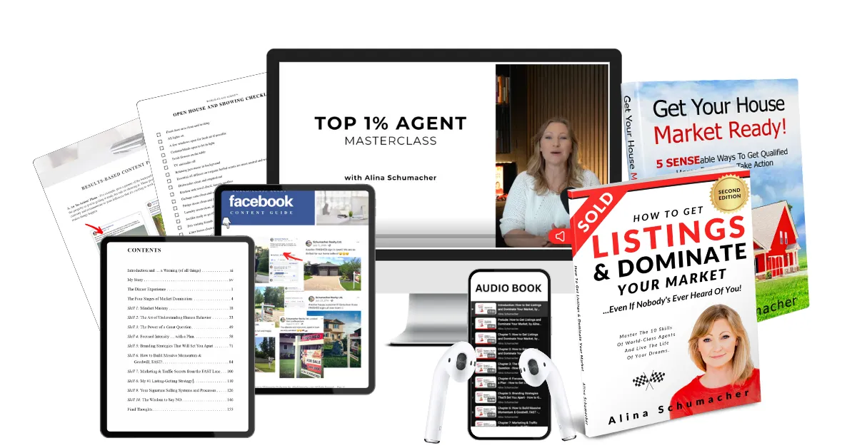 Alina Schumacher is a Certified High-Performance Coach™, host of The Alina Show PODCAST, founder of World-Class Agent Academy, and the author of How To Get Listings & Dominate Your Market ... Even if Nobody's Ever Heard of You!